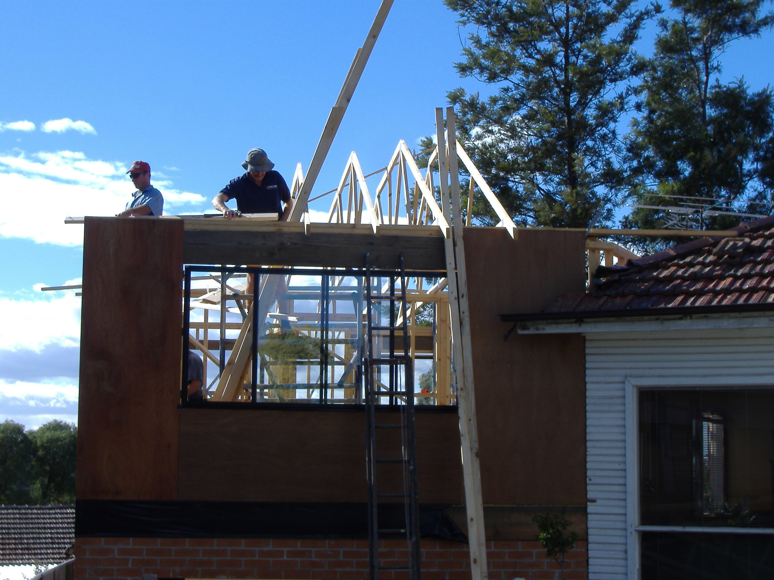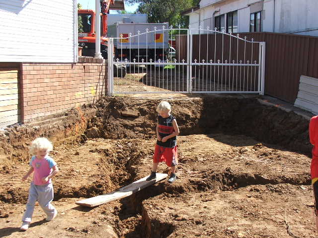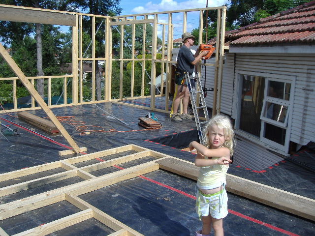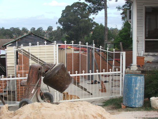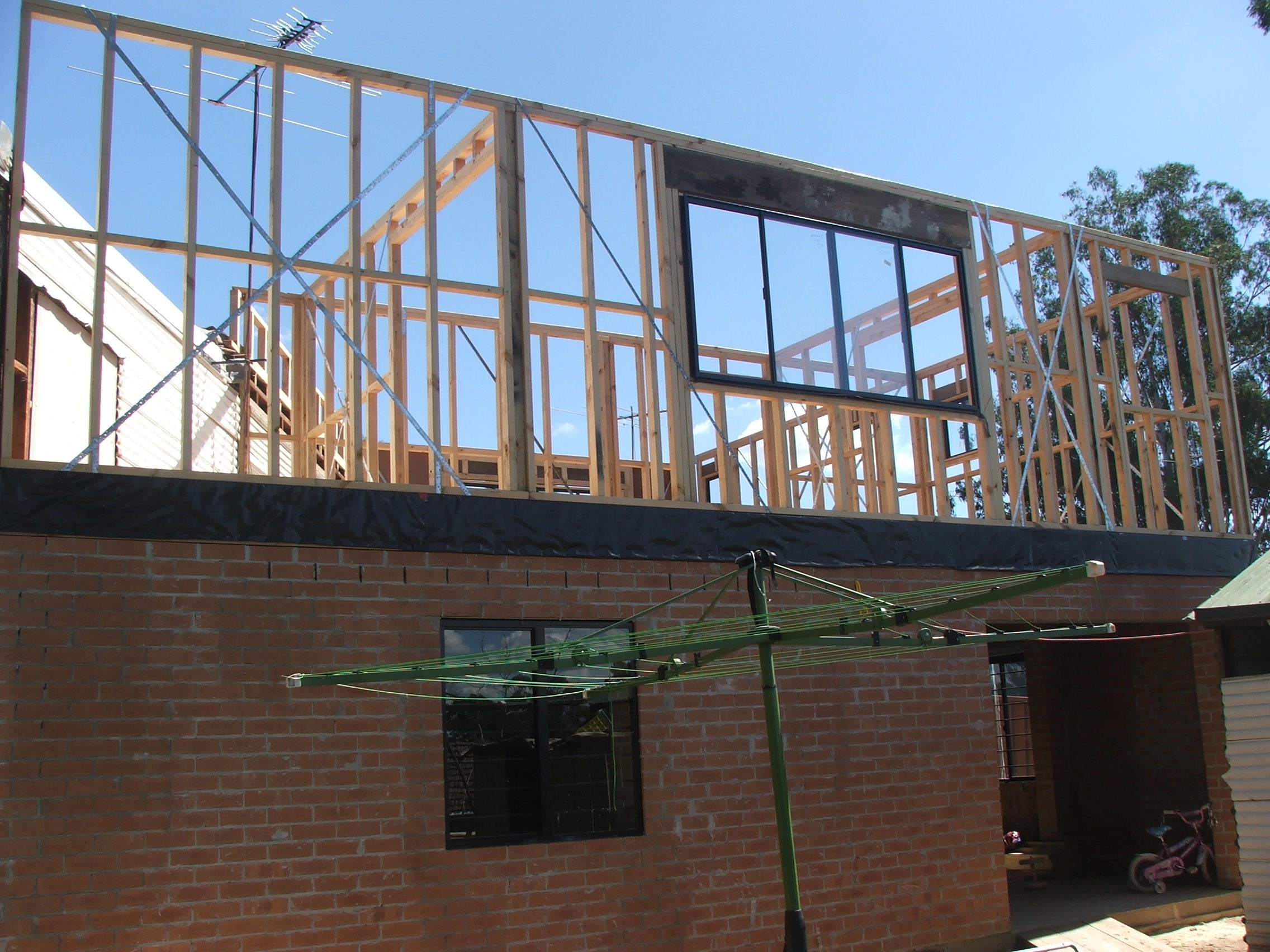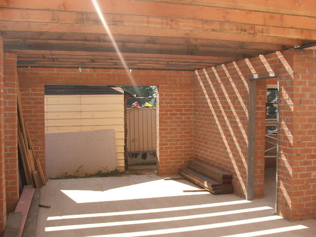 These are the photos of the extension to our house that I am currently building. The lower level is a garage/workshop and storeroom. The 1st floor is a games room and a master bedroom with ensuite and walk-in robe. We started about May 2005, but things are starting to move a bit quicker now.